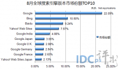 IDC评述网(idcps.com)09月07日报道:根据市场研究公司Net Applications最新数据显示,在8月,搜索引擎GoogleGlobal的份额持续负增长,降至66.74%,环比上月减少3.48%,颓势明显扩大。而百度则实现大幅增...