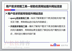 5月20日,参加了2013百度站长平台高端SEO俱乐部沙龙,在沙龙会上卢松松了解到,百度即将推出用户需求挖掘工具,分别是query批量查询工具和共现需求查询工具是,...