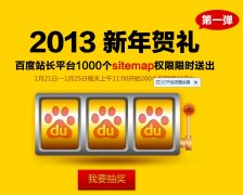 站长网(admin5.com)1月21消息:今日百度站长平台推出1000个sitemap权限限时送出活动。活动日期为1月21日-1月25日,每天上午11点开始200个权限限时送出。参加活动...