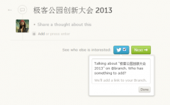 Twitter 创始人 Evan Williams、Biz Stone 的新产品 Branch 已经开放注册,可以使用 Twitter 账号登入,直接利用了 Twitter 上的关系链,减少了重新建立用户关系...