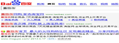 就在刚刚写这篇文章时也发现了淘宝在百度投入了竞价,比如搜索蘑菇街时,第一条就是淘宝的竞价。看到这些,相信不同的人会有一样的想法,因为淘宝解禁了百度,对不同商家或个人的影响也不太一样。下面就来说说对于我们到底会有怎么样的影响呢?