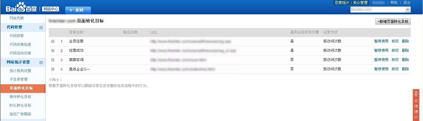 互联网广告模式在最近几年网民的激增下呈现多元化发展,PPC广告,网页广告,视频广告,自然排名广告,流量合作广告等形式给大部分中小企业带来品牌和销量的提升,广告是否值得投放,投放效果咋样,怎样提升互联网广告效果,复眼BI系统小编跟大家列举几款市场上常见的广告监测智能分析系统,望对在互联网上做广告的用户带来一些帮助。 方法1. 百度统计 我们可以登录百度竞价排名的账户,进入百度统计。在百度自身的统计系统中,我们可以看到庞大统计数据。首先我们要明确一点,统计的本质是降低推广成本以达到提升ROI的作用,从百度自身的统计指标来看,百度提供了关键词指标、页面指标、访客指标、外部渠道指标等相关数据,访客从第三方渠道或直接访问进入网站所产生的行为从展现--点击--浏览--咨询--购买并没有系统和流程化的把数据提供给用户,百度统计只是单纯的把数据展现给用户,如果用户想做进一步统计的话,需要在转化率统计这里做设置,并将生成的代码添加到网站的特定页面上。在一个统计周期之后,我们就可以从百度统计中获取我们需要的数据,从而进行分析。