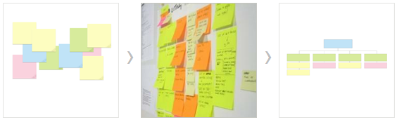 在web交互设计中存在“3次点击”的原则,用户在3次点击后无法找到想要的信息或完成某个功能时,便会选择放弃。所以对于导航来说,最基本的应该是让用户知道当前的页面有哪些内容,并且知道自己的目标内容在哪里。导航设计的广度和深度的区别展示,一般来说,广度比深度的效果要好。在深结构的各级别间选择更容易迷失方向,甚至可能迷路。但也不要在广度上铺的过广,任何时候把太多内容show出来都会吓退用户,让他们被迫患上了“选择综合症”。 为了更明确用户的认知或者甚至说在设计师面对改版等需求时,有助导航的创建和完善,常用的一个方法是卡片分类法。卡片分类法的进行方式很简单,首先准备一些大小相同的空白卡片,将信息写在不同的卡片上,让参与人员自行分类,也可有适当的解释性引导。每次测试的人数最好在2到4个之间,人数过少的话使用者之间不易产生讨论,人数过多则会让讨论变得混乱,场面不易控制。这是一种在在网站或其他规划初期常用的一个测试方法,能从中了解真正符合用户习惯的信息分类,找到之间的认知差异,作为调整架构的依据。