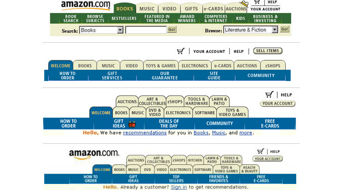 ( 图示出自: Motorola.com) Amazon.com可能是第一个运用tab式导航的大型电子商务网站,Amazon目前线上运用的是垂直菜单+动态菜单的形式。