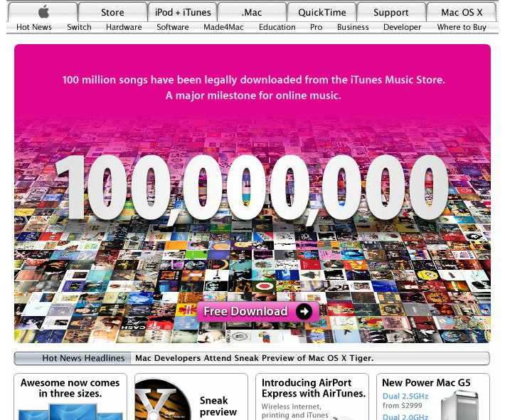 Apple 2004: 导航系统的视觉设计仍然保持微调的状态中。整体依然没有太大的变化。