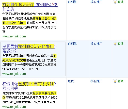 笔者李学智在近一年中,接手托管过二十几家企业及单位的百度竞价;就笔者李学智所在地银川来说,目前做百度竞价的企业及单位类型比较单一,大致就是民营医院、培训学校、搬家公司、网站建设公司、房产中介公司,而李学智所接手托管过的也正是上面这几类,因此本文所述的竞价技法略微带有一定的局限性,望广大读者斟酌吸收。