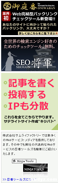 seo工具栏4.在网站的右侧会出现这些图片链接。他们是什么意思呢我们分别来看。首先是第一个黑色的“御庭番”,打开连接我们发现,它其实是一个检测外联的工具,翻译:(“富豪数量”是一个工具,调查的链接指向你的网站显示的风险程度。因为它可以下载在CSV调查数据,您可以减轻处罚的取消请求谷歌。也可以挂竞争现场调查!我认为这是这些天,当搜索引擎优化内容是很重要的,但是,没有的东西,而不是最重要的因素之一,在搜索引擎优化措施也链接。 它是必不可少的搜索引擎优化措施,调查竞争网站的入站链接是链接时,一直强调一次。我能够连接进行检查,并把对象:在搜索窗口中的“链接”当时。您仍然可以,但规格改变,你不会是能够把握的对象是所有链接。还有海外的工具,但你可以不懂英语,准确性还不够好...... 我听到一些声音“被用来检查传入的竞争网站的链接”,我问用户,如您使用的是最近的“富豪数”。它的目的是入站链接您的网站服务开始的调查,但我觉得你也可以使用调查竞争网站下的链接确实。请尝试使用“富豪数”,通过各种手段为那些想学习竞争站点的入站链接! ) 第二个看上去很帅的武士图片是:seo将军它的功能和站长工具一样,检测链接、收录、排名等等方面的数据。 第三个:记事书、投稿:即软文写作发布的网站 第四个:忍者工具:就是网站的数据监测