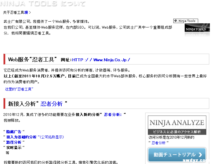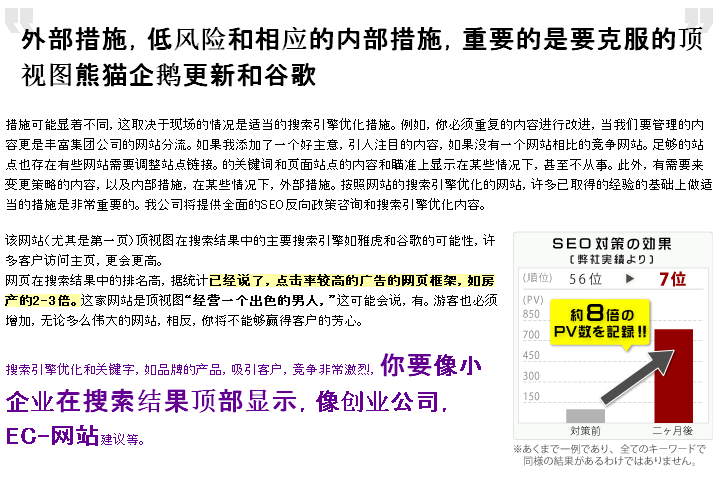 亮点一:奇特的域名1.日本seo网站域名:。首先这个.net就不是最高级的最优秀的域名后缀,其次它在yes和seo中间还加了“-”,身价大跌,按照常理,搜索引擎很不喜欢的。