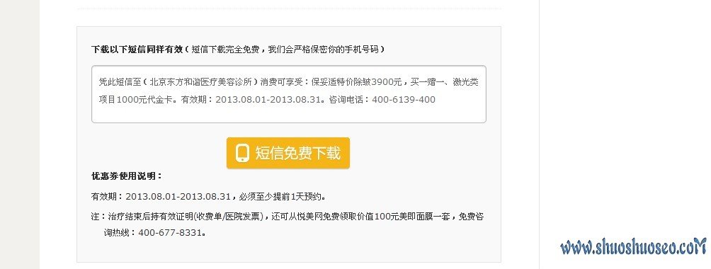 强迫用户不如用户主动 很多商业的网站总是恨不得网站到处都是商务通,强迫用户留下联系方式。但是用户喜欢这样的吗?估计是会有一些刚性需求的用户会与你对 话,但是这种用户又有多少呢?就是一些用户跟你对话,这些用户会跟你成交吗?效果你可以问问你的咨询人员就知道了。我们在来观看悦美网是怎么做的。进入网 站看上去是非常干净的,根本没有很多商务通。都是让用户充分了解他们想知道的东西,在优惠的这个栏目也是让用户自动留下预约信息的。千万不要担心这样的转 换不好,如果你的网站在120有问必答做了投放的话,你去观察一下数据。对话的数据竟然比你在百度投放的关键词的对话数量还要多,这个说明什么?就是你的 网站商业性太重了,反而用户不留下信息。