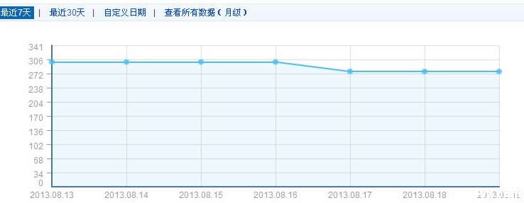 第一,分析网站的百度索引量。首先笔者第一张图放的是近一周百度对于自身网站索引量的分析,上周笔者通过观其站长工具查到自己网站收录量在295篇左右,今天再次查看观其工具发现收录降到275篇了,接着迫不及待的登录百度站长工具,查看百度索引量发现数据明显有下滑波动,大家可以看看上图,这个图说明了什么,笔者进行下自我检讨,最近一月笔者没有为自己的蓝田玉网更新过一篇文章,所以昨天更新之后索引量不增是可以理解的但是降低了,说明什么原因呢。笔者认为内容和外链无时无刻的都是优化百度的核心,文章内容一定要有规律的更新,长时间不更新站内文章,就会降低网站在百度的权重值,权重值降低之后,收录势必会受到影响,这个是笔者通过分析总结的第一点,希望大家引以为戒。