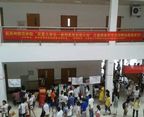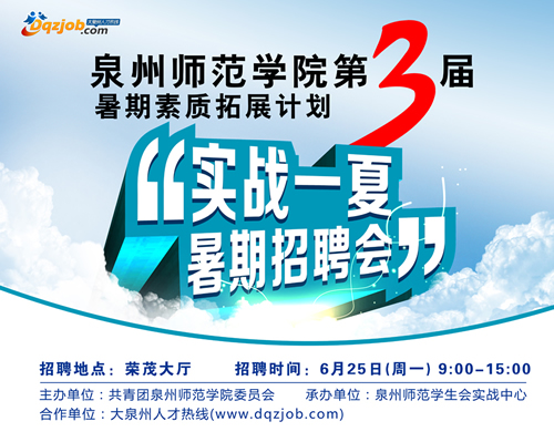 大家好,我是大泉州人才热线的站长,自上次发布了一篇“浅谈人才网线下运营实战赢利经验分享”很多人问我,看到你网站上有跟某大学合作了一场招聘会,是如何谈成的,赢利了多少,等等信息。今天就给大家一一讲解。本人文笔不是太好,是一个铁杆站长,能看得懂就行了,呵呵,希望各位站长谅解。 在6月初的时候,泉州师范学院那边联系我们,说他们想开一场实战一夏招聘,问我们可否给他们赞助企业会员,和宣传费,我觉得有点意向,必定我的站运营时间也不太长,需要推广和打开知名度,最后就进行了进一步的详谈,最终决定,我将大泉州人才热线的所有企业联系方式等联系人,列表出来供他们联系,然后我们提供他们的海报宣传费用,和条幅,拱门和提供简历等费用。 1, 企业列表提供,企业搜集了73家,带有联系方式并打过招呼,企业每家学院收取40元,我们无偿。不过我们也没什么成本,只是一个人费点时间就行. 2, 海报,海报的大小是长一米宽0.8米,总共张数为58张,每张15..5元,花费899元。 海报效果图: