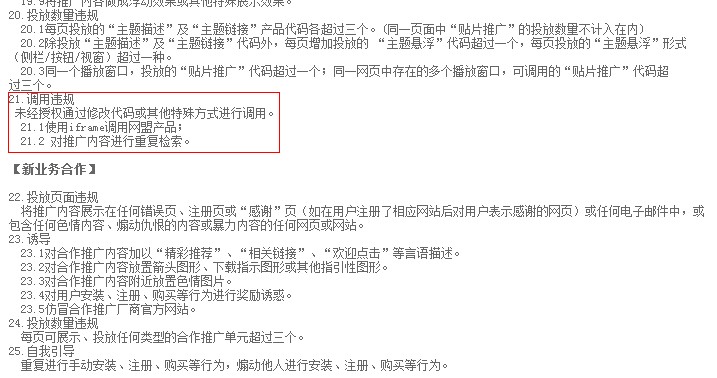 合作规范细则中明确规定网盟推广业务禁止iframe调用。同时百度还强调如有站长存在违规调用行为请及时调整,避免影响网站收益。(来源:Admin5站长网) (责任编辑:admin) |
