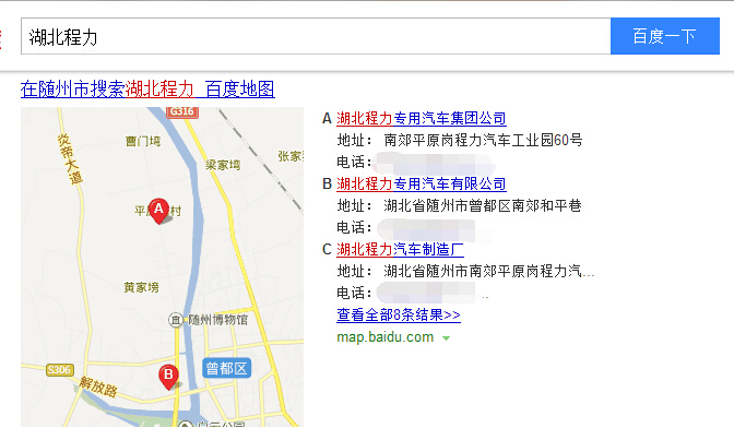 2.搜索湖北程力,结果页出现“百度地图”,那应该如何去完善网站呢?