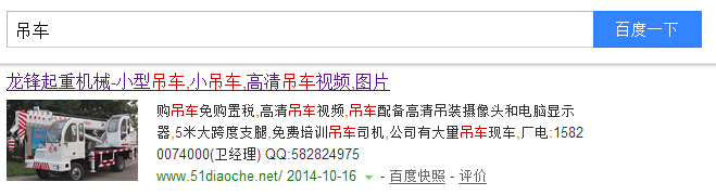 吊车视频 需求:搜索吊车关键词的时候,出现视频,说明用户对视频的需求比较,同时在百度下拉,出现吊车视频表演,而个人觉得比拼技术,说明吊车的可操性强。 除此之外,教程类、电影类、娱乐类行业一般都会出现百度视频。 当然,很多人说,那我是不是把百度视频里面的视频都收集起来,在我网站提供出来就好了呢? 但是,如果仅仅是这样,你比百度视频又有什么优势呢?所以,除了提供视频以外,我们还应该做到下面几点。 解决方案: √ 视频要高清:百度视频提供的视频参差不齐,很多都不是高清的,我们完全可以把高清的整理出来进行提供。 √ 视频要成系列:用户都是懒惰的,他不喜欢还要自己去东拼西凑的找视频,最好是能够直接把一个系列的教程提供给他,他按顺序看就行了。 √ 最好是提供打包下载:基于我国的网络情况,很多人想在线看高清视频还是有难度的。所以,如果我们网站能够提供视频打包下载的功能,体验将会比其他网站好得多。 案例: 这是之前我一个朋友做的网站,排名一直都不错,吊车的指数“1728”。在首页排了一年多,相对来说导入到网站的流量还是不错的。前提是满足用户体验,在标题看来已经满足,在首页内容上自己啪吊车吊东西视频,高清。
