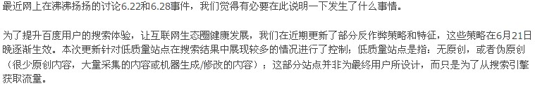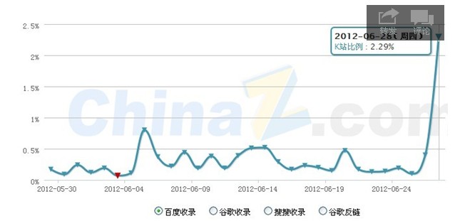 百度6月28号大K站过后,惹起了seo界的一场大风波,有许多人抱怨自从谷歌退出中国市场后,百度一家独大,不透明及人工干预比以前厉害了很多,尽管百度官方已经给出了明确的解释,说是这些站点内容质量低,用户体验度不够高,但是更多的是对这次大K站的猜测,有人说是百度服务器出现了问题,更有人怀疑与百度的财务报表有关系,认为seo优化使得百度的客户放弃了很多的竞价,使得百度收入减少,这才以这次更新为由,K掉一部分网站。 有人统计了6月百度k站的图标趋势