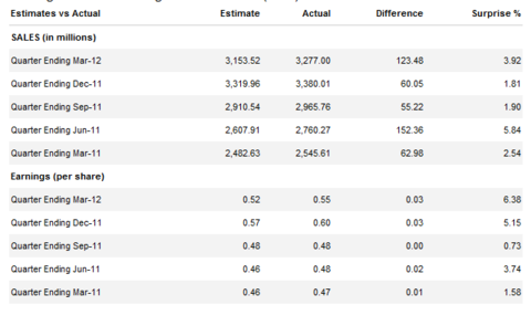 eBay 股价曾于2004年创出历史最高记录,之后走势较为低迷,约翰·多纳霍从惠特曼手中接过领导权后,对公司进行重整,2009年起股价开始复苏,2009年 至今,股价从10美元附近,涨至40美元,累计涨幅300%。eBay近几年的涨势,体现了公司业务调整后的取得业绩成果,以及市场对该公司未来增长的信 心。如上图,最近四个季度,公司营收及每股收益均超过华尔街分析师预期;与此同时,分析师当前对eBay未来四个季度的业绩预期,较一年前的预期也有所提 高,体现了华尔街对eBay的信心也不断提升。 作者:李妍 来源:i美股 (责任编辑:admin) |