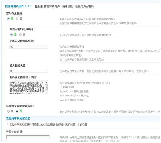 如图:防恶意用户插件后台一角(具体功能细节,有需求的朋友自己去探索哈)