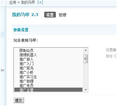 四:其它 今天我也不想一次性介绍太多插件,就先给大家推荐上面最实用的4-5款插件。最后推荐28推正在使用的三款插件,简单图文介绍下。 1:我的马甲(方便有多个ID会员切换发帖) 如图:可以设置什么等级可以使用马甲功能,后台管理也可以查看,每个会员的马甲有哪些