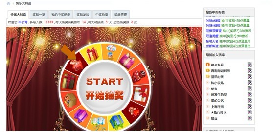 :3:快乐大转盘(每天转一转心情更愉快) 如图:仅次于每日签到的人气插件(演示地址)