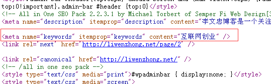 关键词(keywords)指的是用户在搜索某些信息时要用到的词语,网站关键词的选择以及部署是搜索引擎优化的重要部分之一,我们知道就站长工具的权重是以百度预计流量来的,而百度预计流量又是根据网站关键词排名得来,所以网站关键词排名与网站权重是有直接关系的,有些网站可能优化了很长时间却没有增加权重,也许跟选择的网站关键词有很大关系。 核心关键词与长尾关键词 用户在搜索信息时有不同的习惯,我们大致可以分为核心关键词与长尾关键词。核心关键词举例“李文忠博客”,长尾关键词举例“李文忠博客的网址是什么”,这样举例说明相信大家已经理解。 网站关键词指数 指的是用户搜索该关键词的热度,我们可以通过百度指数查询(index.baidu.com)到某个关键词的热度。注:没有指数的网站关键词就算排名在百度第一位也是没有权重的,所以在选择优化的关键词时要注意。同时要根据自己的实际情况去选择相应指数的关键词,有些新手朋友一上来就优化指数非常高的词,相对来讲,指数越高竞争越大,难度越大,选择适合自己优化的网站关键词指数是明志选择。 网站关键词设置 基本上的网站程序都有网站关键词设置这个功能,网站关键词设置要根据网站的内容策划选择相应的关键词,也可以说网站的内容要围绕网站关键词进行编写,网站关键词可以通过查看网页的源码,keywords标签处,也可以通过站长工具查到。比如我的李文忠博客,可以到首页,右击-查看源代码-找到keywords标签对应的关键词就是网站设置的关键词,既:,互联网创业是李文忠博客的关键词。注:部分网站系统后台没有关键词设置功能的可以找到网站的首页程序,进行代码添加。