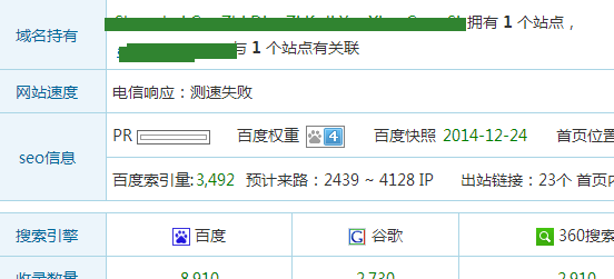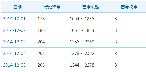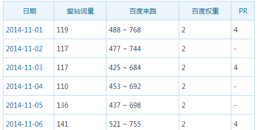 11月初的时候,网站权重为2,当时在A5营销做的SEO诊断方案,然后开始认真执行。执行后到达月底的时候,网站权重晋升到3,效果逐渐上升;次月一直稳定在权重3;到2015年1月份的时候,权重上升到4,效果非常好。如图: 图一:诊断前的数据图,权重为2