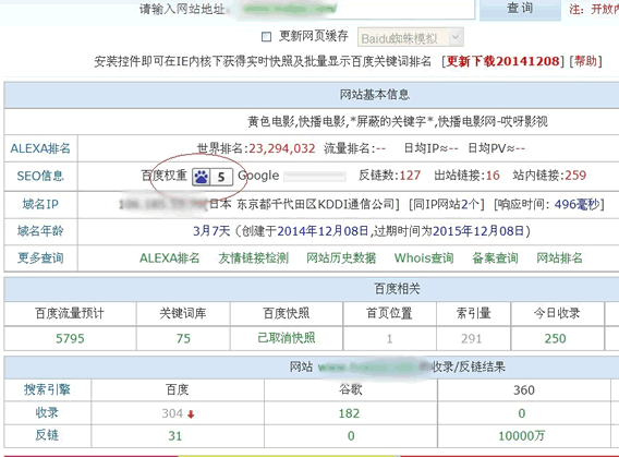 其实所谓的SEO黑帽,就是把白帽seo的优化手法,无限放大。经常有人加站王本人QQ问我一写seo黑帽的玩法。每次回答起来都很无语,没学会爬,就想跑,就想飞,只能说你太天真了! seo黑帽不是你想玩就能玩的起来!必须要好的资源,金钱,软件,作为前提。你能玩起来,说一个我自己的小故事,我几年前搞一个两性站,主关键词是“做爱”百度那时候的指数是15万,我做快小半年还没有什么起色,连100名都没有进去。当然这个站也坐着玩,很少优化,外链都没有怎么搞过,就手动偶尔更新几篇文章,有一次空间快到期了,我去淘宝给这个空间续费。在写评论时候,突发奇想做点引流,把自己域名v58.org留言在评论上。 也许你会说淘宝不允许留网址,但我留的一级域名就不带www的如果你要带www那是留不上去。至于现在一级域名还让不让留,我也不知道了!大约过有半个月吧,和往常一样,起床,开电脑,查站长工具,结果发现我的两性站,主关键词,“做爱”“做爱视频”进前三页,还一堆小词,当时一天能几百IP.,我那一瞬间有点手舞足蹈了! 可能你还没这个概念。我诶你换算一下,如果进首页,15万搜索指数的词,还很多其他的词,如 做爱小说,做爱视频,做爱技巧,很多都进前几页,综合这些词 保守说一天要有2万IP。一个月就60万IP。光百度广告联盟钱就赚翻了! 还可以卖一些成人保健品之类垂直广告,如充气娃娃,壮阳药之类的,很多商家强者加你的QQ。综合一下 月收录过2万不成问题,一年就20多万,你说我能不激动吗!!! 就在我沉醉自己YY中,冷静过后我分析我也没有做啥优化,为什么排名突然没征兆就上前三页,百思不得其解之后的半个月之后! 我知道了答案!我在淘宝评论区留下的网址。被一个淘宝客站群的哥们采集过去了,连同我的网址一起采集,一夜之间搞成几百个类是的站。这个还有平时内容更新也不错,才突然排名上升,这个给我当时触动很大,这个不就SEO黑帽吗? 要问这个站之后的结果怎么样了,还不说了,今天主要讲SEO黑帽!他通过大量资源,和牛逼软件成就SEO黑帽!要说谁玩SEO黑帽玩的最好,还要属于那些做*彩的seo哥们! 老话说的好,重赏之下必有勇夫。现在这几年做*彩金主,天天通过各种seo群。Seo论坛。招聘Seo人才出国做SEO,大多是去柬埔寨,新加坡,越南,老挝之类,站王本人就被邀请好几次。一般seo人月薪1万~~3万 ,牛的seo人直接给分成了! 前几天我有个徒弟还说,有人找他出国做seo菠菜,我给他建议还别去了,去那外国,人生地不熟,给你护照一扣,不开工资,让你工作。,这还算好的呢,如果在你卖到人贩子那当鸭子卖了,你菊花保不住了,最后他还在北京找一份SEO的工作! 说起SEO黑帽发源地,*彩金主,不差钱,做起*彩广告不差钱,几千,几万不在话下。有哥们一次注册1000个域名,自己搞半年没有效果,来找我,他只会最基本的seo,做*彩赚很多钱,想要更多*彩流量,让我他做,我没有答应毕竟这个是犯法! 后来听说他花钱找人专门做seo黑帽的人,做了效果还算不错,又赚爆了! 先给大家看几个案例, 第一个,站群资源,大量反向连接,指向同一个站。我发现他时候第一月就有排名了