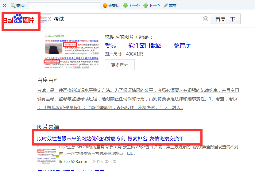 虽然图片被定义为:考试,有点不搭。但还是可以在排名第一的位置搜索到《以时效性着眼未来的网站优化的发展方向》这篇文章。 反之,一般用户习惯是直接搜索文章,结果如下: