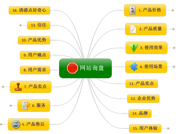 影响询盘的因素大致有这些,可能根据不同的行业有些东西会有一点差异,比如可能有些黑暗的是看谁给的回扣多,一般情况下就是,你的产品价格是不是比别人便宜,你的质量是不是比别人好,你的产品效果是不是比别人好,你的售后是不是比别人好,你的服务是不是比别人好等等。 总之我们首先要把客户最关注的一个点拿出来,也就是常说的痛点,你能解决这个问题,那么用户就会找你。询盘自然就会来了。以上这是一个思维导图,我们要从用户的需求过程中找出影响询盘的因素有哪些,然后依照重要度来制作网页,最后我们要做的是就是画龙点睛,找一个诱惑点或者激起客户的好奇心。我一般最喜欢把这个诱惑点放在客户最关注的位置上,也就是网站沟通工具的咨询框。 自从我这样改进网页之后,网站的询盘上升了不少,这个方法中没有任何技术上的东西,我这个东西大家也不必去抄,因为你的实际情况会不一样,关键是掌握了这种思维方式,你就能运用的得心应手。以上是我解决网站询盘的一些经验,希望对大家解决询盘问题有所帮助,谢谢,文章内容由科怡环保原创分享。 (责任编辑:admin) |
