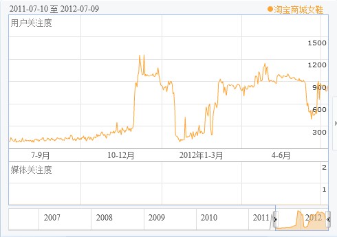 关键词“淘宝商城女鞋”百度指数一年的变化。
