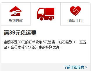 上图中是当当网的图书频道,不知道为什么,搜索框中显示的竟然是水杯,是想提示消费者在图书频道中消费水杯呢?还是啥?无论如何,京东关于搜索框的利用的确很用心,提示消费者的购买行为时有一定的帮助的。 第二点:对于消费者的服务(货到付款,慢39免运费,售后上门)提示明显