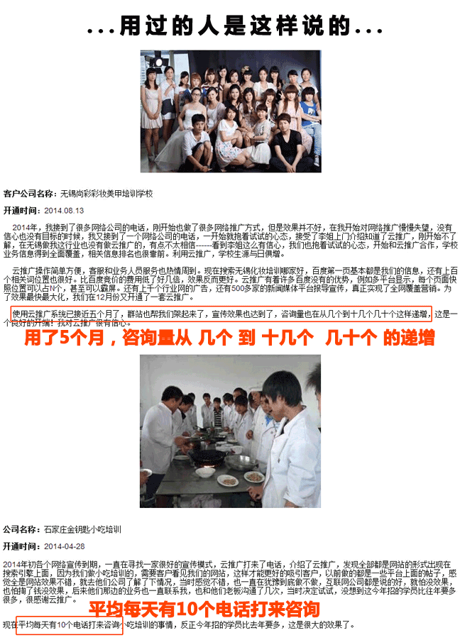 在做外推的过程中找到一个好的外推平台对网站能否得到好得排名起着至关重要的作用。那么好平台去哪找呢?最简单的方法就是跟踪有竞争力的对手的外推收入排名,从中找出最为有效的外推平台,学以致用,快速的超越竞争对手。可是要如何去跟踪竞争对手的收录排名呢?今天我就来给大家简单的说说跟踪外推收录排名如何做。 小编是13年开始接触网络外推的,那时候思想和经验还不多,很多事情都是摸索着做,而这种状况产生的最直接后果就是连续大半年效果都不理想,辛苦白费了不说还总被主管批评。说实话我当时真的是很努力的,比现在投入的精力还要多得多,可真的就是做不出效果,计划也总是跟不上变化快。 我把这事和表姐说了,正好她有一个大学同学也是做这行的,我就向他取经询问跟踪外推收录排名如何做,他就建议我下载云爪网络营销分析管理系统试试,不过那时候我对这类宣称功能强大的没有一点好感,给我的感觉就是软件都是骗人的。可是不忍拂了人家的美意,表姐也打电话来问,我就抱着随便试试的心态下载了一个,当时真的没指望它能起多大作用,但用上之后我才知道我的目光是多么的短浅。云爪网络分析管理系统让我的工作效率不仅提升的一倍,很多我之前解决不了的问题也一并帮我解决了。一段时间以后,效果出来了,排名也上去了,还得到了上司表扬。