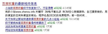 虽然百度否认百度权重数据权威性,但站长们却不断地在讨论相关“百度权重”问题 颇具讽刺意味的是,虽然百度煞有介事地表明自己与各种“百度权重查询”无关,但将“围绕关键词做文章”作为SEO金科玉律的站长、SEOER们,却将它这个公告看作百度打击SEO的一个例证,各种有关“百度权重提升或下降”的专业讨论在百度知道、各大站长论坛络绎不绝,百度希望以一个“郑重声明”的公告否定各种“百度权重查询”合法性与权威性,引导站长、SEOER做“常青树SEO”的想法至此彻底破产。 (责任编辑:admin) |