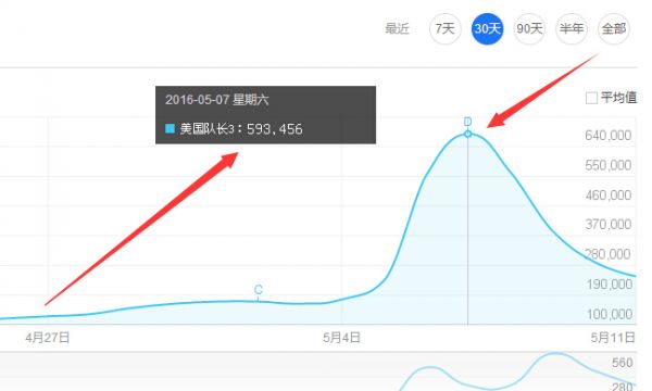再来看看《美国队长3》这个关键词的百度指数,如图: