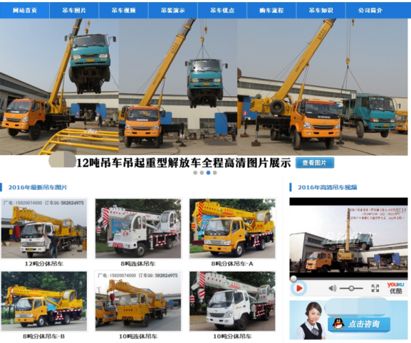 通过百度指数我们可以看到,除了吊车这个核心词外,图片是最大的需求,其次是视频,最后是价格。那么,后面的事情就很简单了,我们只要依次把这些关键词布局到导航上,基本上就OK了,如下图: