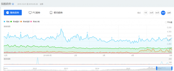 通过上面这两张图,我们大概可以了解到,用户比较感兴趣的东西有吊车的价格、吊车图片、吊车视频。我们来看一下它们的指数: