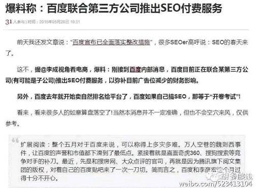 虽然离百度历史最高股价还有很大差距,但是基本已从魏则西事件的影响中,慢慢走了出来。 为什么能够走出来?就是因为百度的正确应对方式,让自己的形象变得正面。 华尔街虽然要看企业盈利,但是更希望看到一个正向的、有未来的企业。那里绝对不会容许臭名昭著企业的存在。百度要做的一定是前者,而不是后者。 该时间后,百度升级了信誉系统,让网民的搜索结果更有保障。我怎么没看到有人去写文章渲染此事呢?而更多的人是“嫉恶如仇”(有兴趣可以去读一篇«六神磊磊读金庸的文章:人人都想挖墙脚») 好了,蛋扯犊完了,请看正文(提示:以下内容有点血腥,偶有暴力,还带有性色彩,未满18周岁,或者情商没长好的,建议可以点击关闭本页面) 一、 SEO对企业有价值 先看一下,标准的SEOer比较正统的“官话”: 1、 提高企业在互联网的品牌知名度 销售话术:你看前面是竞价,都是花钱才能上去的,而只有实力的公司才会出现在自然排名里面,让你的客户觉得你比别人有实力 2、 扩大产品或服务的曝光度 销售话术:不仅能够在百度,还能够在360、谷歌、有道、搜搜、搜狗等上面展示自己,每一个搜索引擎都能够找到你,花一份钱,在多个平台展示 3、 点击不收费,收费便宜带来有意向的潜在客户 销售话术:做竞价就是吃春药,吃好使,不吃就不好使,而且还有后遗症。不依赖药物,永远不能自然勃起,做SEO是调理你的肾,从根本上面解决你不行的问题。而且中药还比较便宜,一次性吃好,终生不软。