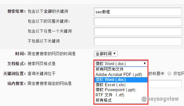 有时候我们经常会在网上找一些专业的文档资料,如word,ppt,pdf等,这个时候我们也可以借助高级搜索工具快速实现,比如我们想找seo教程的pdf文档,见图: 三、使用高级搜索指令 (责任编辑:admin) |
