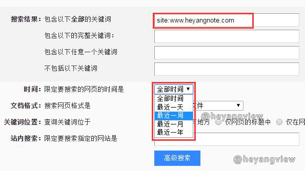 从上面的截图我们可以看见,高级搜索中的细分做的非常的详细,包含了不同的维度,如时间,匹配,位置,指定网站搜索等; 使用高级搜索好处有很多,尤其是对做SEO的小伙伴,比如: 1、查看自己网站的最近收录;