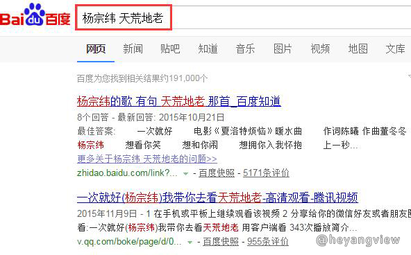 一直以来,我对很多新手朋友问我应该怎么学习这样的问题回答都是:使用搜索引擎。可以这样说,搜索引擎是我们自我学习最好的老师,不仅效率高,而且这种方法学到的真的就是你自己的经验了,更重要的是它不会向你收取任何学习的费用,你所要付出的就是时间成本。其实很多时候,新手学习过程中大部分问题完全可以通过自己搜索去解决,但是很多朋友却花费更多的时间去询问别人,可能最后还解决不了,这是一个方法问题。今天我们就来聊聊,有哪些搜索技巧是作为网站运营要掌握的,不仅可以提升自学效率,还可以提升工作效率; 一、特征关键词组合搜索 什么叫特征关键词组合搜索?说白点就是把你能想到的目标关键词组合起来搜索; 我们正常情况下搜索都是输入一个关键词,或者是一个简短的话,这样有时候很难快速的定位自己想要的结果; 了解搜索引擎工作原理的小伙伴可能会知道,当我们在搜索框中输入信息的时候,它会和自己的数据索引库进行比对,然后计算排名反馈到搜索结果页面中,而计算排名一个非常重要的因素就是匹配相关性,匹配程度越高,越有可能被展现出来; 这样一来我们就可以从增加相关匹配度着手,把想到的特征关键词组合在一起,这样能很快帮我定位想要的东西; 举个例子 之前有一次,我在走路,偶然听到旁边放着一首歌,刚好放到副歌的部分,我一听就喜欢上这个旋律了,我能获取到的信息就是歌是杨宗纬唱的,还有听到一句歌词有天荒地老,其他都不知道了。 但是获取到了两个特征关键词“杨宗纬”,“天荒地老”,照样可以快速的找到这首歌曲,见图