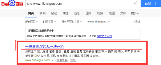 出现上图原因是因为前期为了更好使一块海购支付模式审核通过、其相关技术部门为了配合财务审核支付模式,临时将域名挂在了另一个测试商城模板,因而上图所展现的描述信息来源于测试商城模板内容,搜索引擎已将测试商城内容抓取并索引建库。 现在把域名解析在一块海购商城,对于一个新平台,搜索引擎有一个考核识别过渡期,还未能及时更新收录一块海购商城现有内容,所以当搜索时还会暂时展现原来搜索引擎所抓取索引的快照内容。 百度搜索当前所展现的百度快照内容来源于以下测试模版内容: