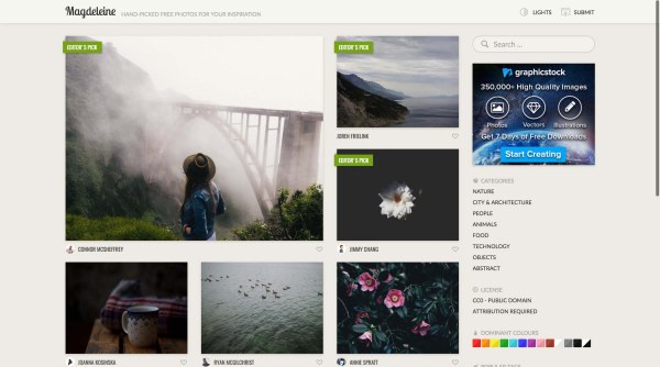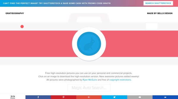 Gratisography 每周都会更新,图片角度和题材都比较另类,人物图片不少,另外他家的 logo 也比较另类……