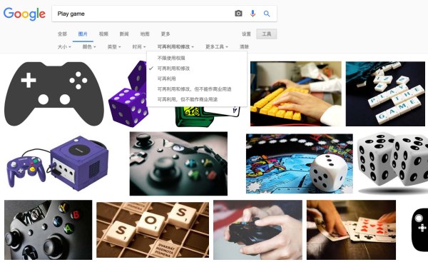 第二个是我大谷歌,谷歌的图片搜索那是相当的强大,选择右侧的「工具」,可以自定义很多东西,包括大小、颜色及使用权限