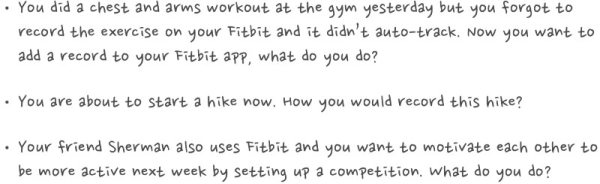 游击式可用性测试 在基于job stories和我对Fitbit核心功能的理解,我产出了一些有一系列任务的情节,例如: