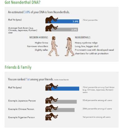 △ 23andMe操作流程 23andMe会对你提供的口水进行分析,比如始祖分析,可以告诉你自己的祖先来自哪里,甚至帮助失散多年的人找到自己的家人。