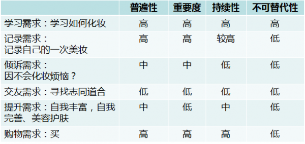 而这些需求,包括三类“社会性需求”,三类层层递进。 1、信息与信息的“工具型需求”,比如学习需求、提升需求,就拿你当学习工具。 2、信息与人的“交互性需求”,这是一种弱联系,比如记录需求、倾诉需求,在这个过程中,信息与人密切接触; 3、人与人的“连接性需求”,这是一种强联系,比如交友需求。 美妆社区理想的状态是,三层“社会性需求”都能在一个平台实现,无需腾挪倒转,也不再依赖外部传播(微信、QQ之所以伟大也就是满足了这三类需求);而且美妆社区务必要摆脱只能满足“工具型需求”的尴尬,否则就将沦为“用完就走”的工具。但现实的状态是:多数美妆社区没法兼顾这三者。 第二题:轻社交重媒体(内容),还是轻媒体重社交? 也就是美妆社区到底是媒体还是社交,到底该强调关系链,还是内容。 这得从社区的轻重说起。