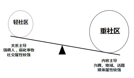 轻社区是关系主导,社交属性较强,强调的是人以及人与人之间的关系,弱化了事物,如微信朋友圈、QQ空间,是基于UGC模式,讨论时效性较短,用户的注意力也较分散。 (责任编辑:admin) |