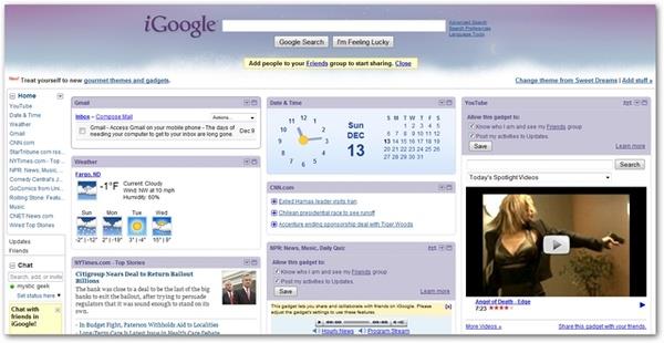 Google Reader也许是最令人可惜的被关闭的服务 然而就是这样的一款无可挑剔的神器,在2013年被Google无情地关闭。幸好Google让用户有三个月的时间导出自己的订阅内容,用户也可以很轻易地转用到Feedly等服务。但无论如何,Google Reader的关闭仍是互联网的一大损失。 iGoogle 这又是一个大家相当熟悉的服务,这Logo看着就是眼熟。iGoogle是Google曾经推出的门户服务,但它和其他门户网站不一样的是,iGoogle是可以让用户自己定制内容的。用户可以个性化定制iGoogle的主页,在页面上放置天气、日程、资讯等等模块。就算以现在的眼光来看,玩法也并不过时——Cortana的内容定制,玩法不也跟这差不多?