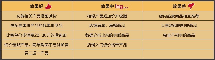 通常,在单品页的最上面,我们会通过1-2帧促销海报将店铺的优惠活动广而告之给访问页面的潜在客户,顺便做一次过滤分流。但有很多商家却不考虑消费心理和客户体验,在页面的最上面堆砌大量的关联推广商品,这无形中干扰了客户浏览自己感兴趣的目标商品页面。 视觉呈现 “讲故事,卖产品“永远比“讲产品,卖产品”要来得高明,将产品优势和卖点转化成消费者利益,再通过场景化的方式呈现出来。比如,将宝宝穿着纸尿布安然入睡的情景用画面呈现出来,或者将使用减肥产品成功瘦身以后,秒杀路人的场景用画面呈现出来等等,激发出客户内心想拥有该产品的渴望,引导客户去想象拥有产品后的感受。虽然大部分的人都能看懂图片隐喻,但好图片配合好文案往往更容易打动人心.促成销售。 网上购物最大的体验障碍就是看得见摸不着.我们五官中除了视觉以外,听觉、嗅觉、触觉和味觉在网购过程中是完全无法感知商品的,因此,要想打消客户的顾虑,鼓励他们大胆购买.商家就要用相机镜头代替他们的眼睛,在页面里全方位地呈现出商品的外观和细节,用图文并茂的方式呈现出商品的卖点和品质的保证,给客户营造一个客观、安全的购物氛围。 关联推荐 合理的设置关联商品可以有效地提高转化率和客单价,所以一定要先想明白“放什么,“放多少.和“放哪里”这3个问题.还要搭配相应的促销策略才能达到预期效果,随意推荐只会适得其反。