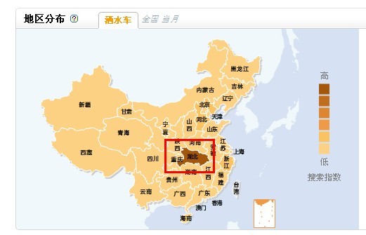以上是我百度推广的关键词设置,其中洒水车主词的用户点击率是最高的,也是最花钱的,但同时也是最没有效果的,反而像长词如洒水车厂家、洒水车报价、洒水车销售公司这些长尾关键词还能带来些流量。在此告诉大家一个小小的心得,如果你发现某一天你的竞价钱花了不少,但又没人咨询,而且跳出率老高(前提是你网站的用户体验做得不是太差),很有可能是恶意点击,这时你就要调整或者暂时关闭你的关键词推广。 没办法,再不改变就要亏死了,于是我下决心做数据分析。不 统计不知道,一统计吓一跳,我的五个客户咨询电话都不是直接搜索洒水车这个关键词进来的,都是通过长尾关键词然后点击到达我的网站,然后再形成咨询的。仔 细一想,什么人会搜索洒水车这个关键词?当然是同行了,同行没事的时候总喜欢看看自己的洒水车排名第几了,中国人有个坏习惯,就是看到上面有几个竞价心里 就不爽,所以就帮你点点。所以你不是死在你客户的手上,而是死在你的同行手上。其实你的关键词是同行搜索多还是真正的客户搜索的多,看百度指数就可知道: