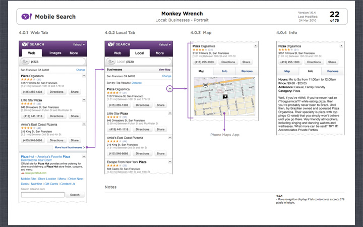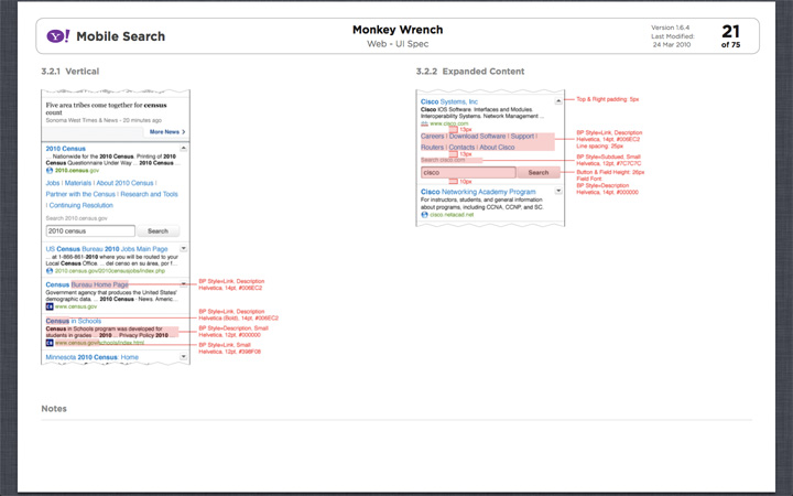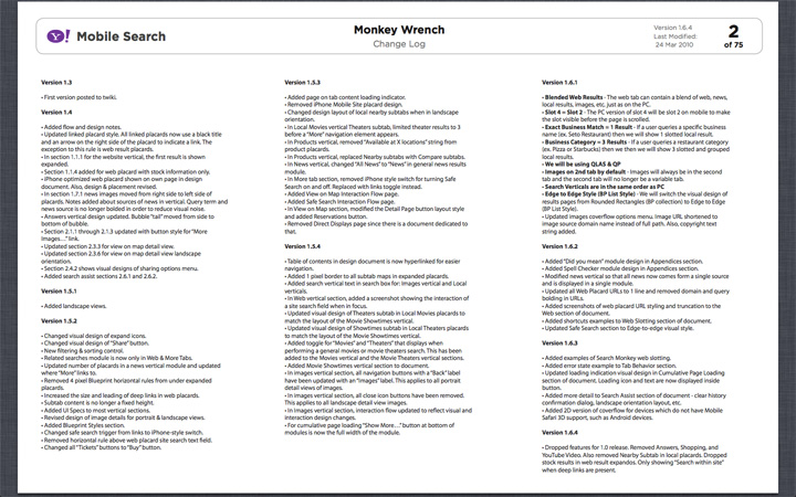 生成PDF后,可以放入iPad等移动设备,可以帮助你在5分钟内,与老板散步中描述几个好点子。 设计文档的难点是开始建立所需的细致时间较多,但是文档架构一旦搭好,维护的精力小于预期,以后的每次输出,制作的设计师以及阅读的产品经理和开发,都应该是心情愉悦的。:) Wrap up – – – – – – - 以下是以前我工作中产出的设计文档案例,请参阅 :)